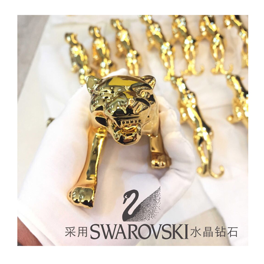 When we received this order at the exhibition, we were really excited and somewhat embarrassed, because we have never made such a size product, which was a great challenge to us. After several times of communication with customers, from the perspective of cost performance, we use zinc alloy materials of European standards. The highest pressure of zinc alloy die casting in general industry is 88 tons, and we purchase 250 tons of die-casting machines, It took more than a month to design the mould, and in determining the perfection of the semi-finished product, to ensure that only one semi-finished product is pressed out at a time with the longest time. After several proofing, the whole product polishers are all throwing by hand, and they are sure that there is no blind angle in place. Finally, 24K gold plating is adopted. The diamond is Swarovsk crystal diamond, and the guests are very satisfied, This has also become a good product for us to show the technological level.